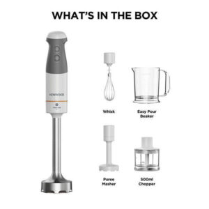 Kenwood Hand Blender, 850 Watt, 1.7 Liter, with Multiple Attachments, White x Grey
